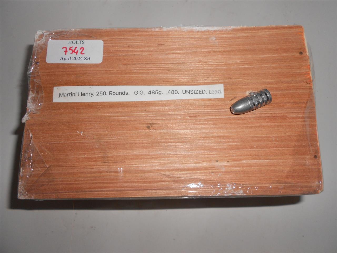 250 X UNSIZED .480 MARTINI-HENRY G.G. .485G LEAD BULLETS, in a wooden box