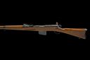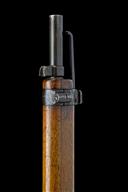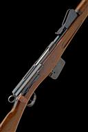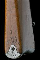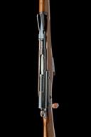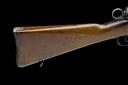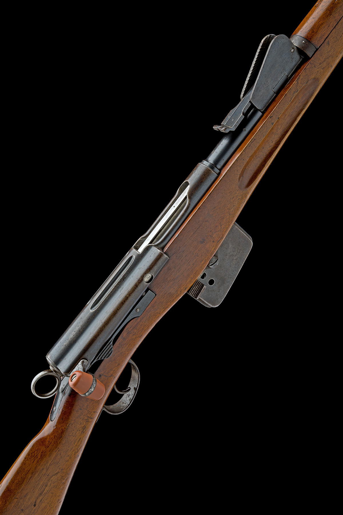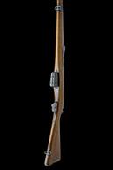 circa 1895, with 30 3/4in. barrel, dove-tailed blade fore-sight, elevating tangent rear-sight, blued blind-fluted receiver with brushed bright straight-pull toggle bolt and safety ring to rear, walnut full-stock with full hand-guard and stacking spike below muzzle, matching numbers and fitted with a later leather sling
