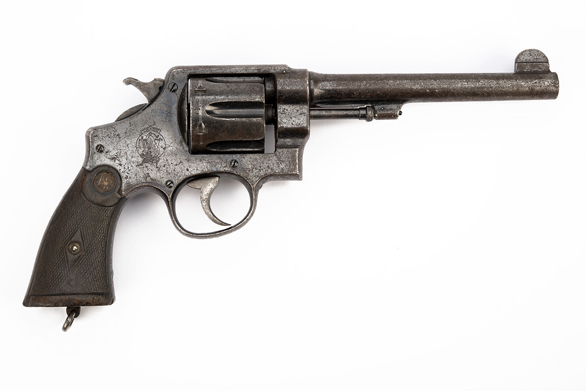 A .455 SMITH & WESSON MKII HAND EJECTOR REVOLVER, serial no. 15648, with blued 6 1/2in. barrel, swing-out fluted cylinder, solid frame and chequered walnut grips, finish worn