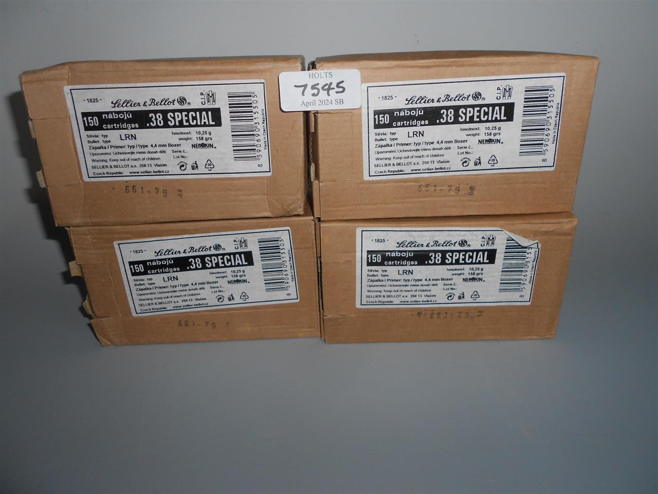 600 ROUNDS .38 SPL AMMUNITION BY SELLIER & BELLOT LRN 158grn BATCH 651-75 Please be advised that cartridges/ammunition, primers, primed cases, blanks and percussion caps CANNOT BE SENT ANYWHERE in the UK or EXPORTED OVERSEAS by POST or CARRIER. Due to this NATIONAL and INTERNATIONAL CARRIER rule, within 30 days of the sale date, please arrange collection with our shipping department from our Norfolk HQ. If payment and collection is not arranged within 30 days of the sale date, that will indicate that the items are not required and they will be disposed of.