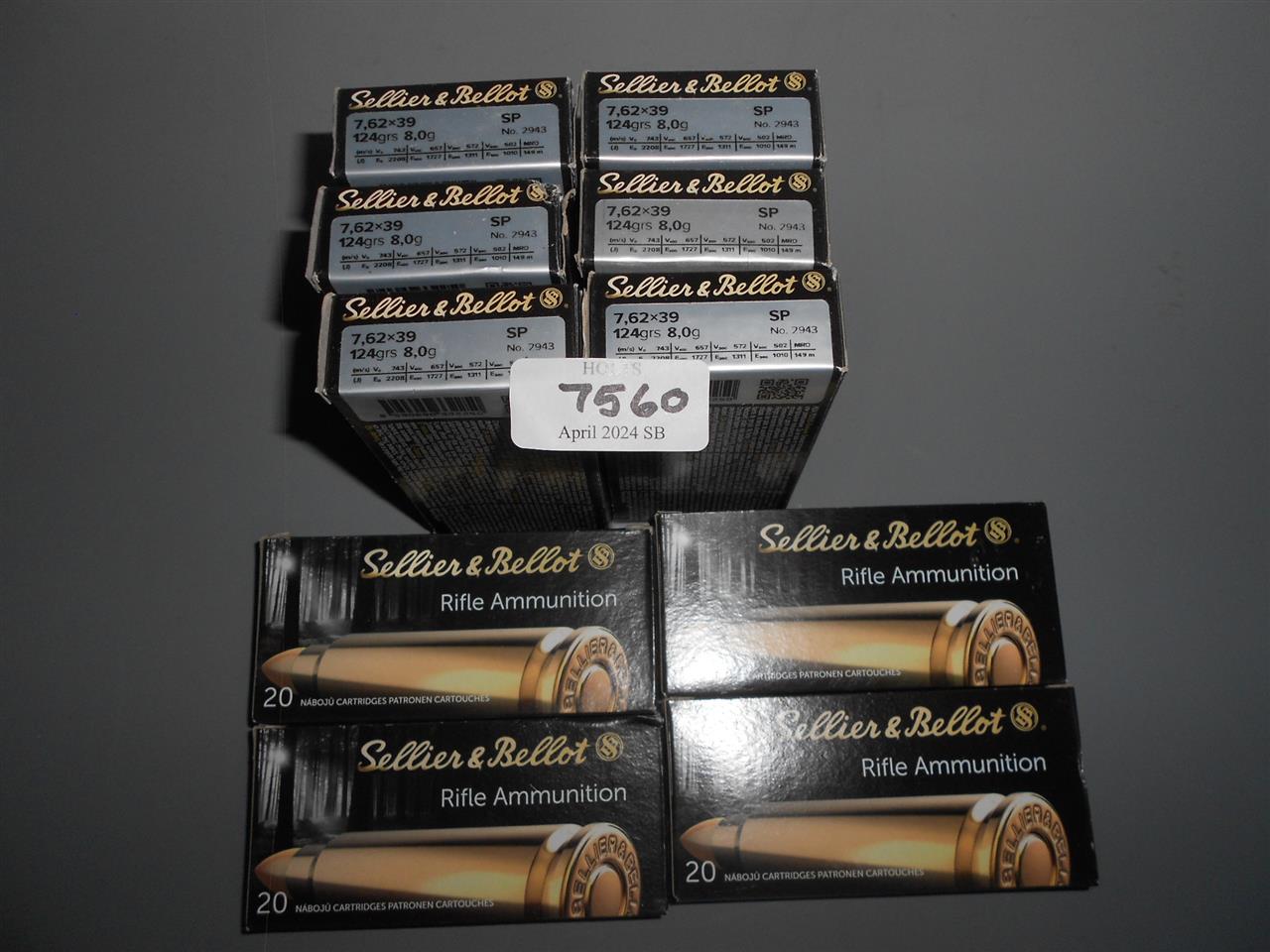 200 ROUNDS 7.62 X 39 AMMUNITION BY SELLIER & BELLOT 124 grn SP