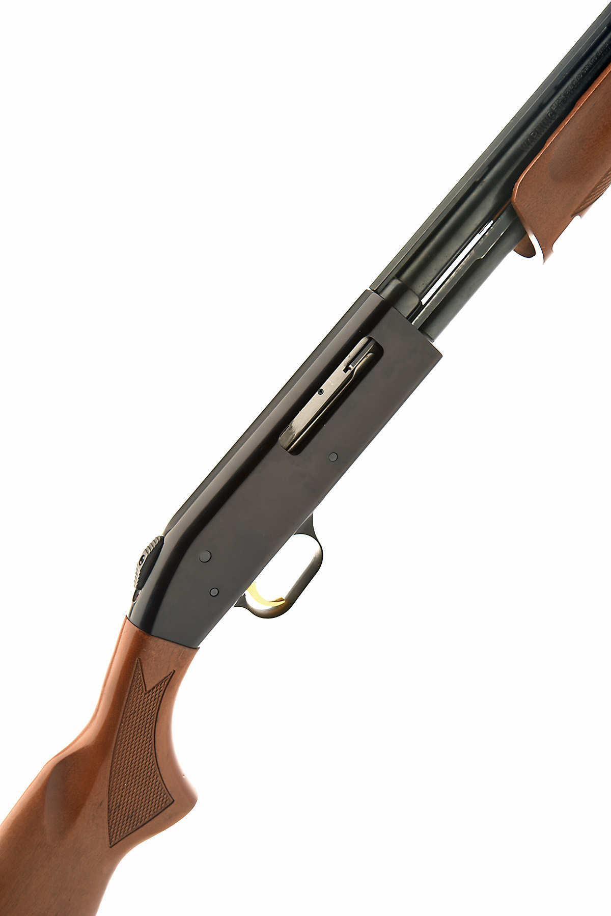 A MODERATED MOSSBERG .410 MOD 500E PUMP-ACTION SHOTGUN, serial no. R802355, (2)