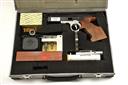 A CASED MODERN .32 PATRIOT MUZZLE-LOADING MAGAZINE-FED PERCUSSION PISTOL, serial no. 04-023, designed to run on Bullseye nitro powder with large pistol primers, with slab-sided 4in. barrel, two mouth-organ style magazines, manual cocking and anatomical walnut grip, in its aluminium travel-case with accessories