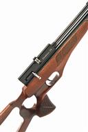 A BROCOCK CENTAUR .22 PRE-CHARGED PNEUMATIC AIR-RIFLE, serial no. 3943, with 16 3/4in. barrel including sound moderator, bolt action receiver with rotary magazine, walnut skeleton thumbhole three-quarter stock and under-barrel air-reservoir