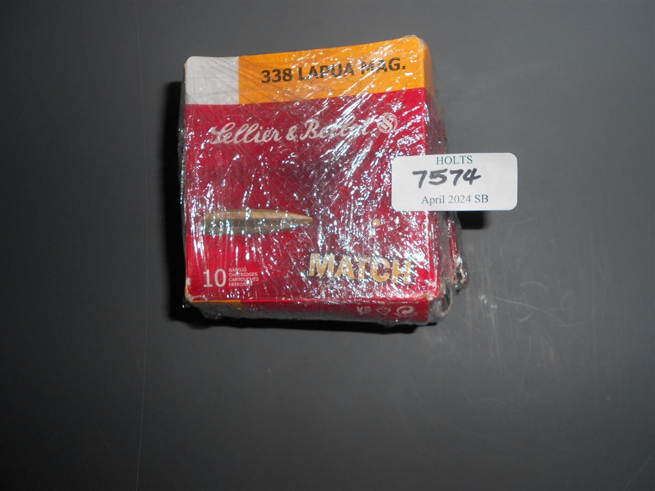20 ROUNDS .338 LAPUA MAGNUM AMMUNITION BY SELLIER & BELLOT, 250GRN HPBT 340408 Please be advised that cartridges/ammunition, primers, primed cases, blanks and percussion caps CANNOT BE SENT ANYWHERE in the UK or EXPORTED OVERSEAS by POST or CARRIER. Due to this NATIONAL and INTERNATIONAL CARRIER rule, within 30 days of the sale date, please arrange collection with our shipping department from our Norfolk HQ. If payment and collection is not arranged within 30 days of the sale date, that will indicate that the items are not required and they will be disposed of.