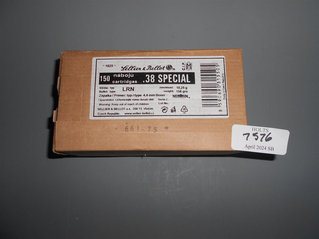 150 ROUNDS .38 SPECIAL AMMUNITION BY SELLIER & BELLOT, 158GRN LRN BATCH 315505 Please be advised that cartridges/ammunition, primers, primed cases, blanks and percussion caps CANNOT BE SENT ANYWHERE in the UK or EXPORTED OVERSEAS by POST or CARRIER. Due to this NATIONAL and INTERNATIONAL CARRIER rule, within 30 days of the sale date, please arrange collection with our shipping department from our Norfolk HQ. If payment and collection is not arranged within 30 days of the sale date, that will indicate that the items are not required and they will be disposed of.