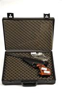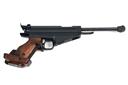 A CASED .177 FEINWERKBAU MODEL 90 RECOILLESS MATCH AIR-PISTOL WITH ELECTRIC TRIGGER, serial no. 313328, with sighted 7 1/4in. barrel, sliding breech, side-lever cocking (currently cocked), blacked receiver and anatomical right hand walnut grip, in its maker's vinyl-covered case with barrel weights, untested