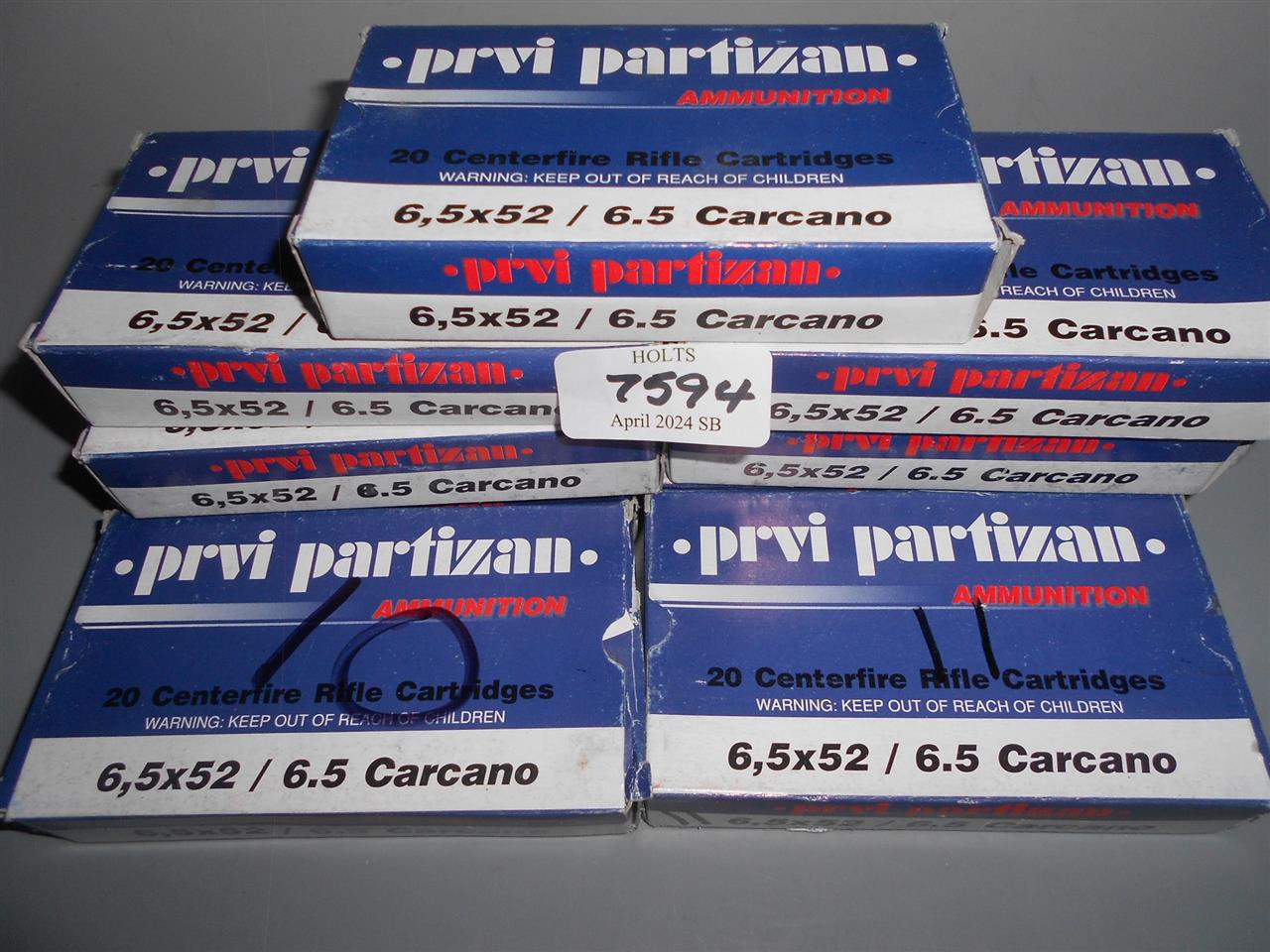 161 ROUNDS 6.5 X 52 CARCARNO BY PPU, FMJ BT BATCH 0501 Please be advised that cartridges/ammunition, primers, primed cases, blanks and percussion caps CANNOT BE SENT ANYWHERE in the UK or EXPORTED OVERSEAS by POST or CARRIER. Due to this NATIONAL and INTERNATIONAL CARRIER rule, within 30 days of the sale date, please arrange collection with our shipping department from our Norfolk HQ. If payment and collection is not arranged within 30 days of the sale date, that will indicate that the items are not required and they will be disposed of.
