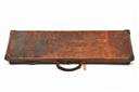 A BRASS-CORNERED LEATHER SINGLE GUNCASE, fitted for 30in. barrels, the interior lined with red baize, a Watson Bros trade label, brass lock (key missing)