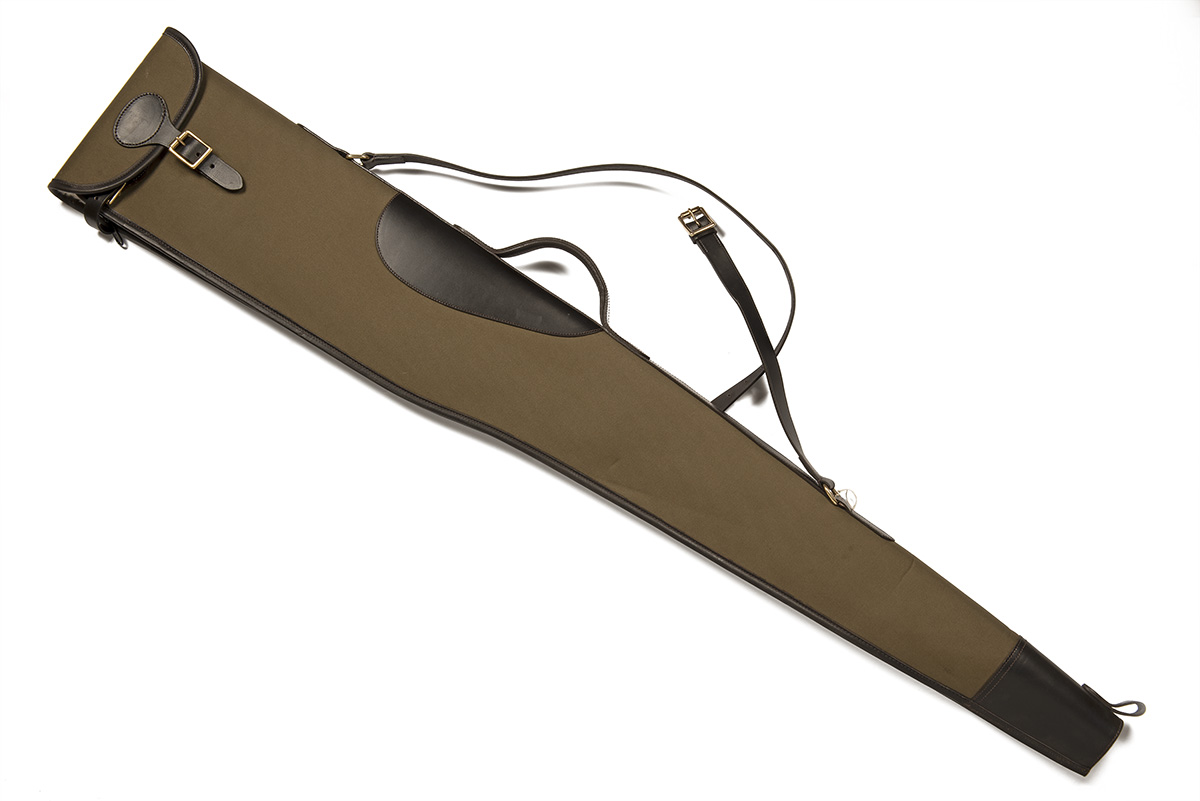 COLEMAN BAINES AN UNUSED FLEECE-LINED GREEN CANVAS AND LEATHER SINGLE GUNSLIP,