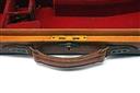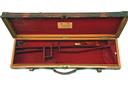fitted for 30in. barrels, the interior lined with maroon baize, the lid interior with a James Purdey and Sons trade label, leather fixing straps, the lid exterior embossed 'R.T.', brass lock (key missing)