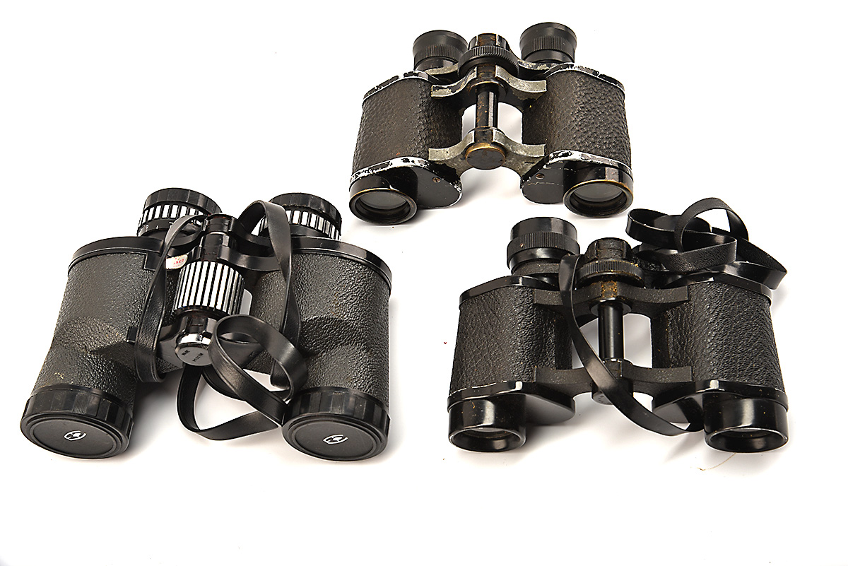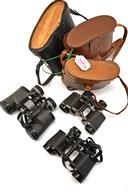 THREE VINTAGE BINOCULARS IN LEATHER CARRY CASES, 3