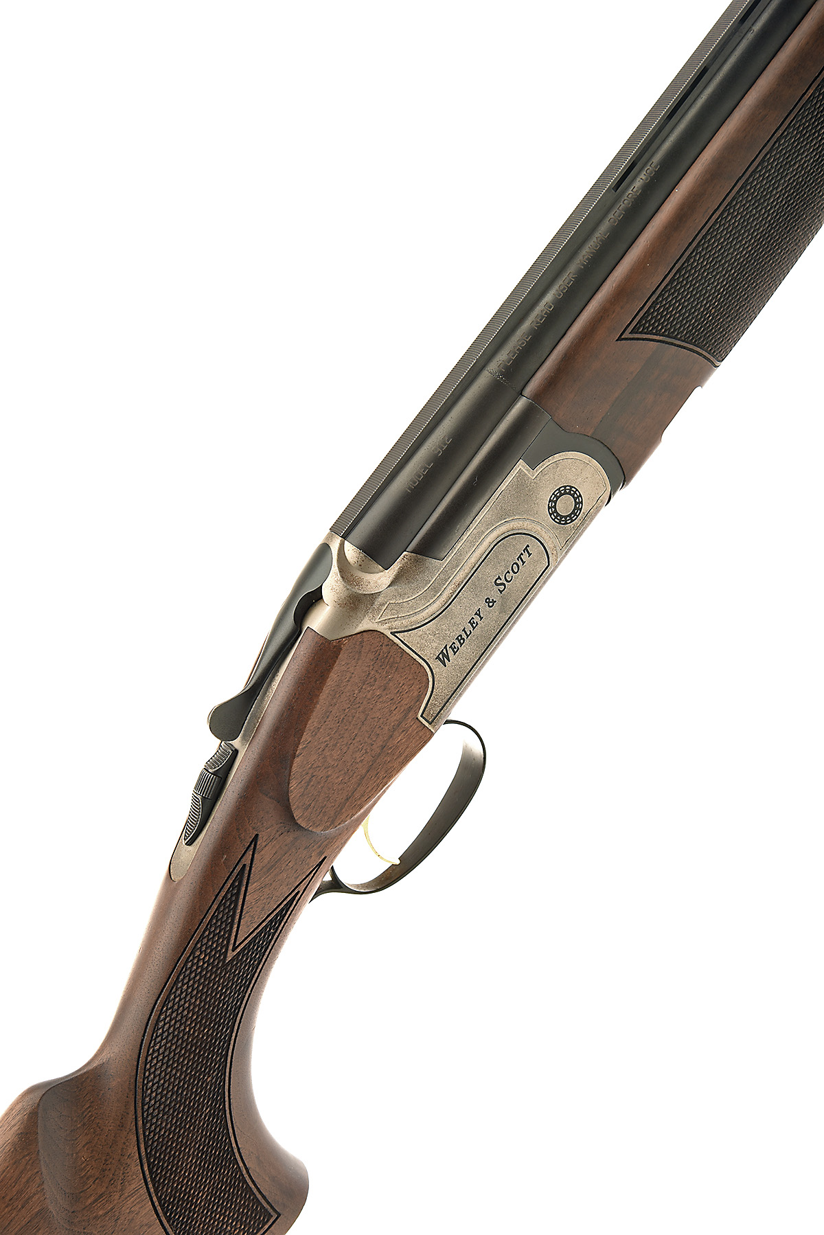 WEBLEY & SCOTT 12-BORE 'W&S 912' SINGLE-TRIGGER OVER AND UNDER EJECTOR, serial no. TRAN080490OU, circa 2008, 32in. high performance steel shot nitro barrels with ventilated mid-rib 10mm ventilated top-rib, 3in. chambers, multichokes (with spares), hold-open toplever, manual safety, border engraving, 14 1/2in. pistolgrip stock including buttplate
