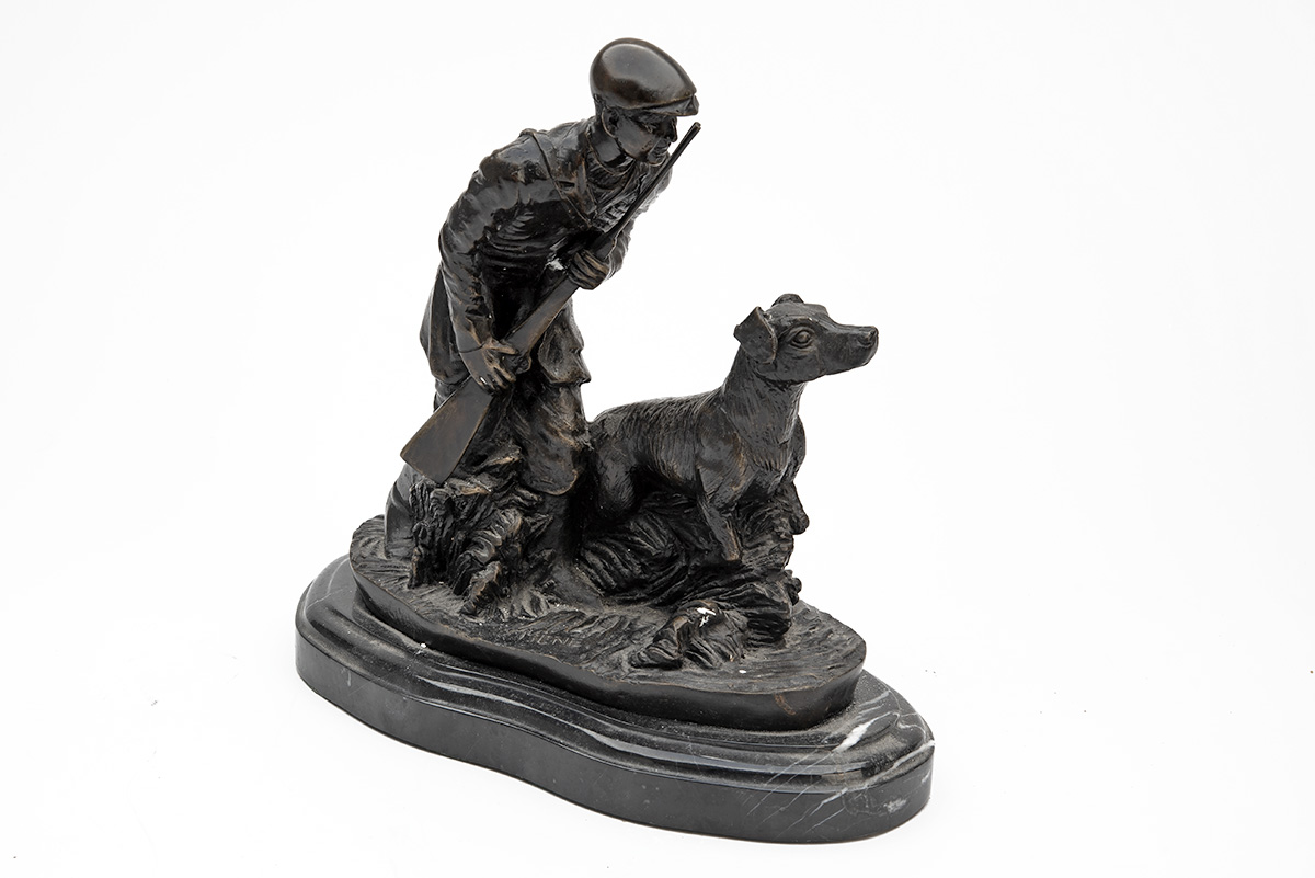A BRONZE OF A GAMEKEEPER AND RETRIEVER,