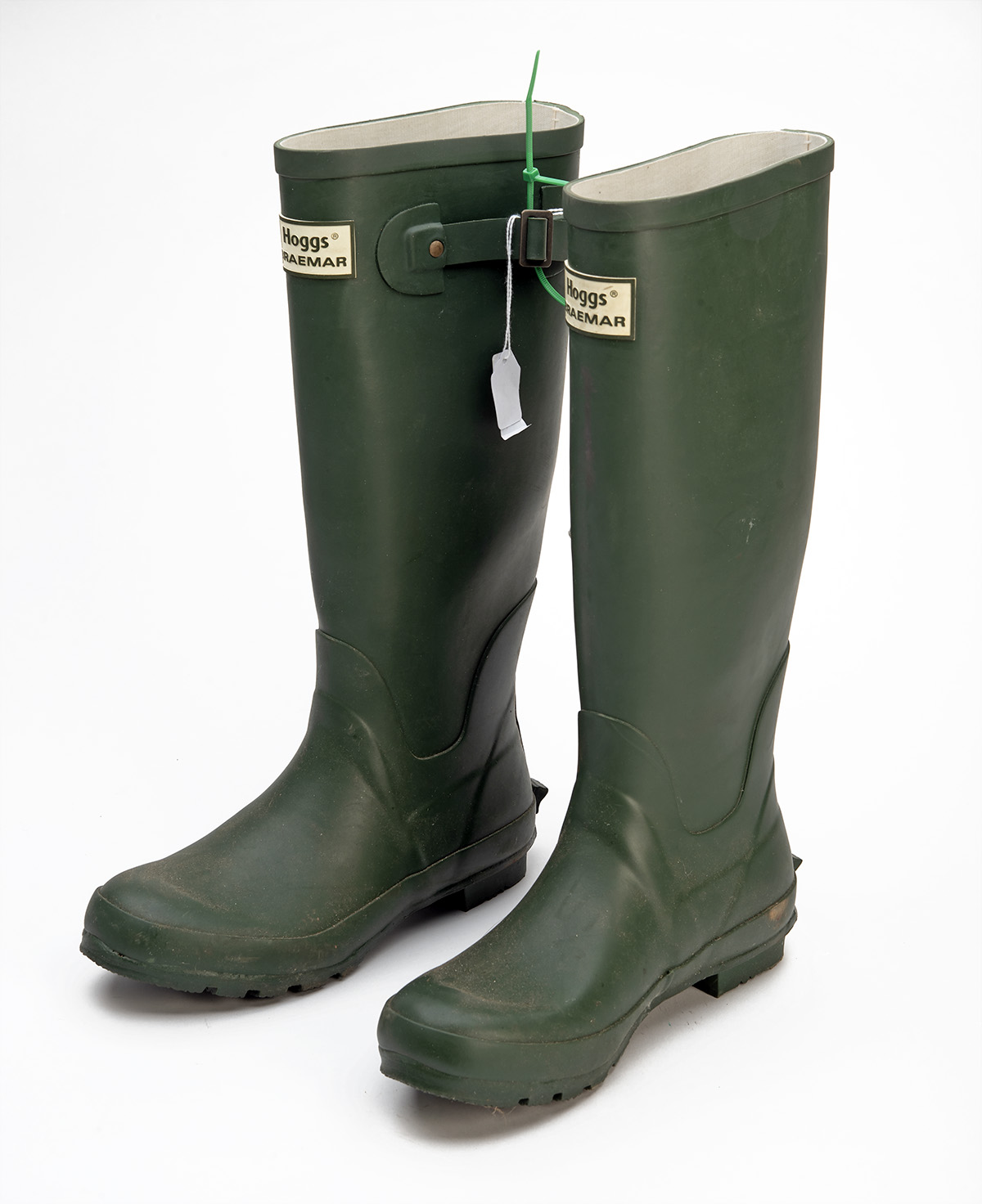 AN UNUSED PAIR OF 'HOGGS OF FIFE' BRAEMAR WELLINGTON BOOTS IN GREEN, SIZE 5