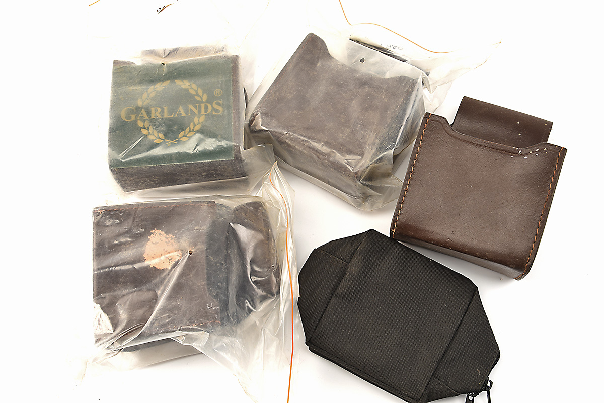 FIVE 'GARLANDS' CARTRIDGE POUCHES, 4 x dark brown leather pouch
