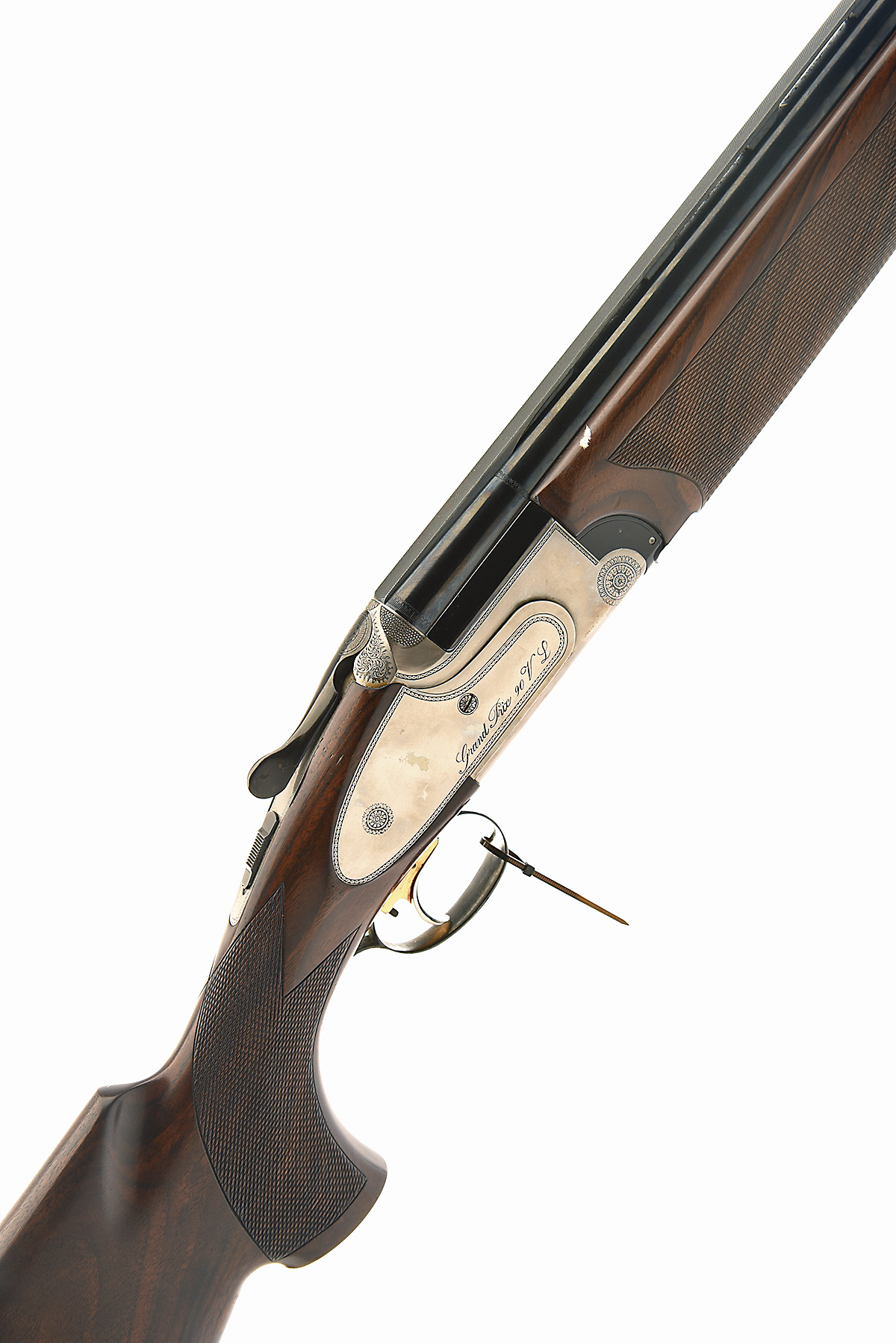 LUIGI FRANCHI 12-BORE 'GRAND PRIX 90 VL' SINGLE-TRIGGER SIDEPLATED OVER AND UNDER EJECTOR, serial no. 5191472, dated 1991, 30in. nitro barrels with 11mm ventilated matt top-rib, 2 3/4in. chambers, bored approx. 1/2 and full choke, hold-open toplever, manual safety, gold-washed adjustable single trigger, border engraving, bright finish, 14 1/2in. pistolgrip stock including 1/2in. rubber recoil pad, weight 8lb. 4oz.