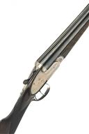 GUNMARK ARIETTA 12-BORE 'CROWN SABEL' HAND-DETACHABLE SIDELOCK EJECTOR, serial no. 31673, for 1982, 27in. nitro chopperlump barrels, 2 3/4in. chambers, bored approx. true cyl. and 1/4 choke, removable striker discs, automatic safety, hand-detachable lockplates with beaded border engraving and a central crown motif, articulated front trigger, 14 3/8in. stock (minor cracks to right underhorn, rear of lockplates and rear of top tang), weight 6lb. 10oz., in a leather case