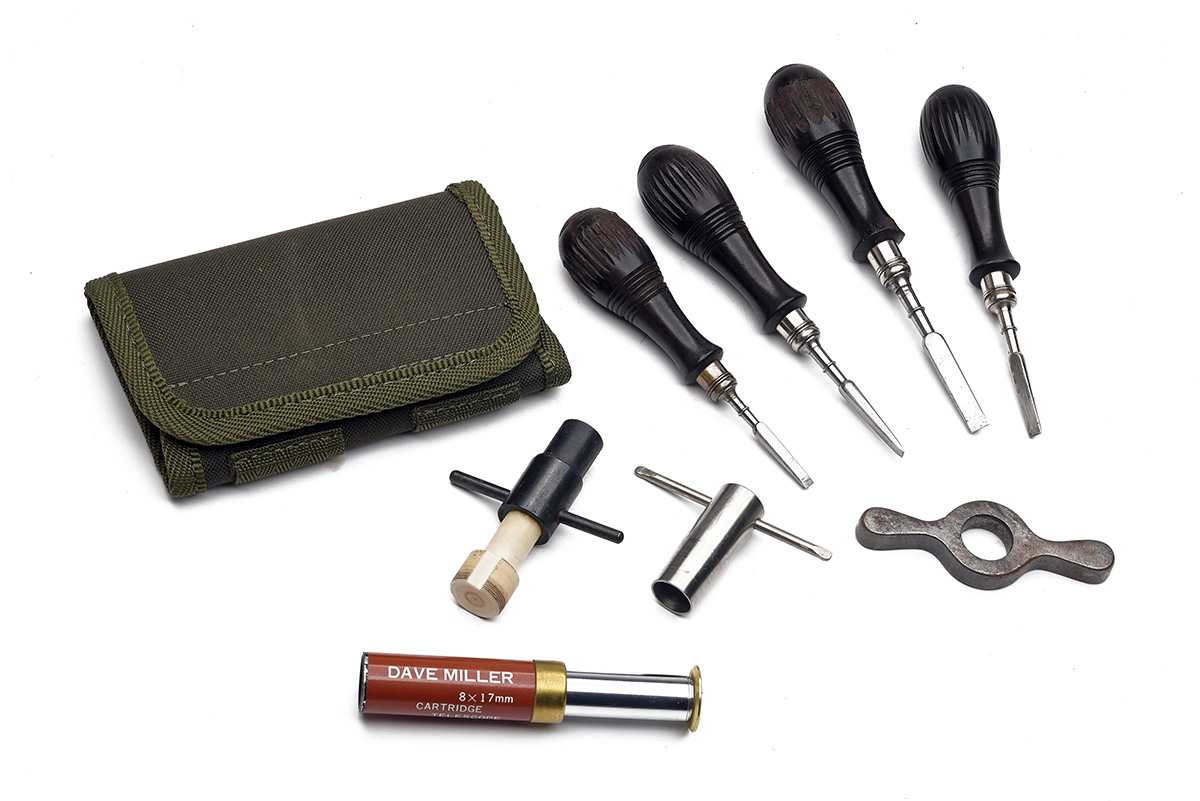 A SET OF FOUR EBONY GUNSMITH TURN SCREWS & RELATED ITEMS,