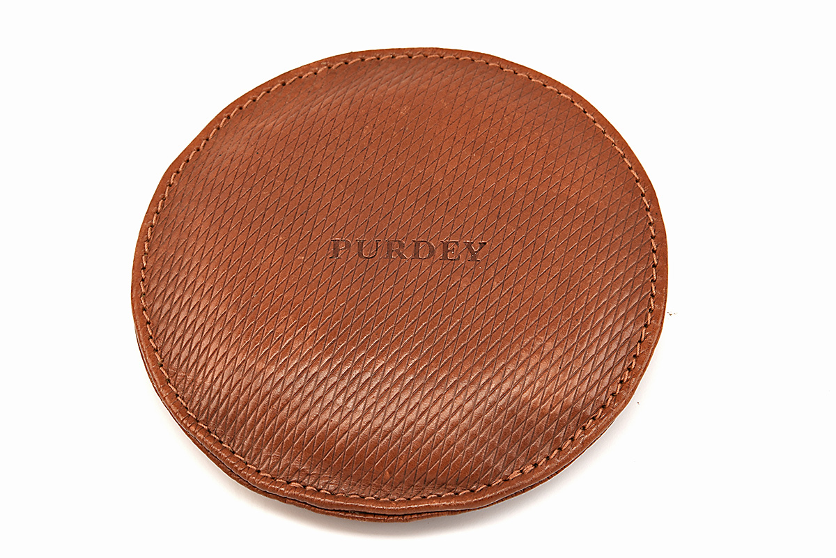 A 'JAMES PURDEY & SONS' CHEQUERED LEATHER SHOT-FILLED BUTT REST