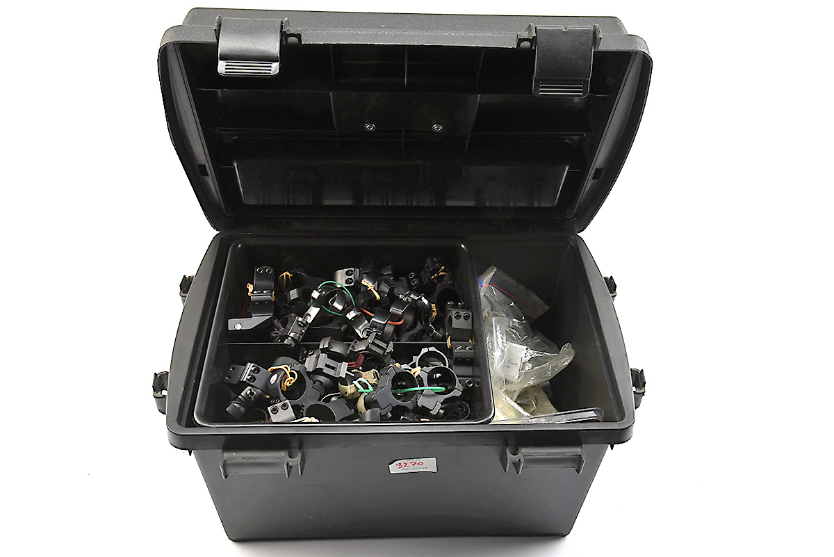 A LARGE QUANTITY OF SCOPE RINGS AND SHOOTING RELATED ITEMS, comprises of a large quantity of scope rings of various sizes both used and new, sling rings, picatinny rails among other shooting related items in 'MTM CASE-GARD' utility dry box