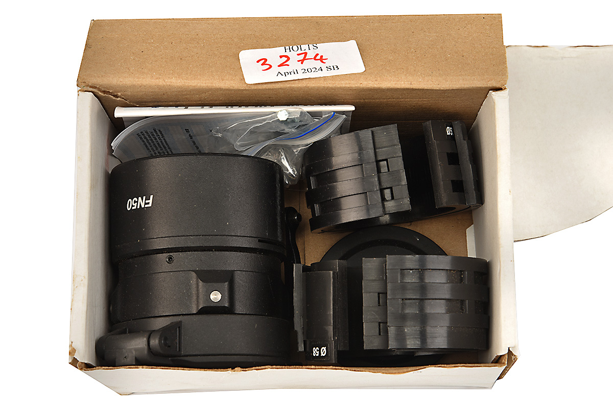 A 'PULSAR' FN 50MM COVER RING ADAPTER IN BOX' suitable for objective lenses with external diameters 51.6mm, 53.4mm, 55mm, 56mm, 57mm, 58mm, 59mm (59mm ring missing)