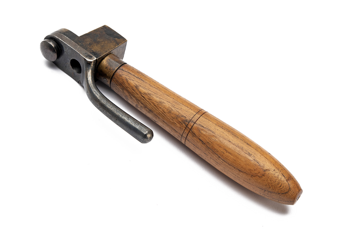 A RARE UNITED STATES .44 MILITARY STARR ARMY REVOLVER BULLET MOULD, circa 1860s, wooden handle, brass mould with 'H' military inspection mark and steel sprue-cutter