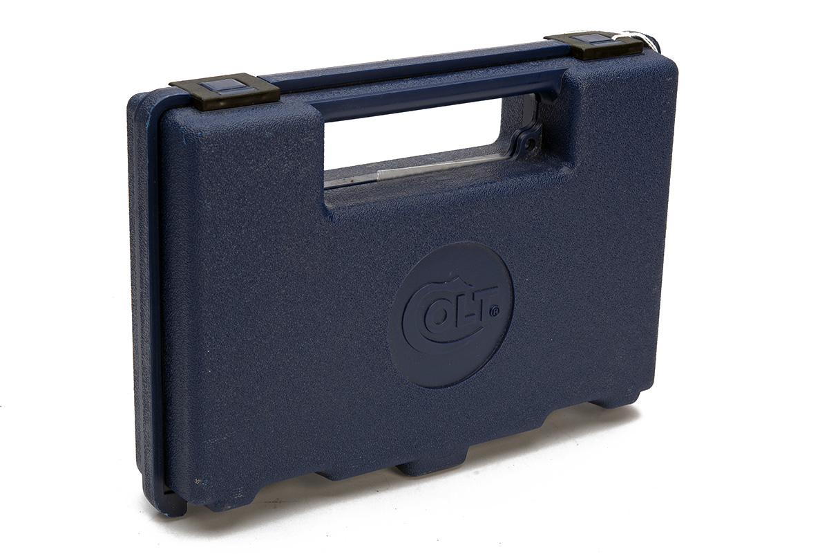 HARD PLASTIC CASE FOR 'COLT MK IV SERIES 80-380 AUTO PISTOL WITH A MAGAZINE SLOT IN BLUE, includes instruction manual