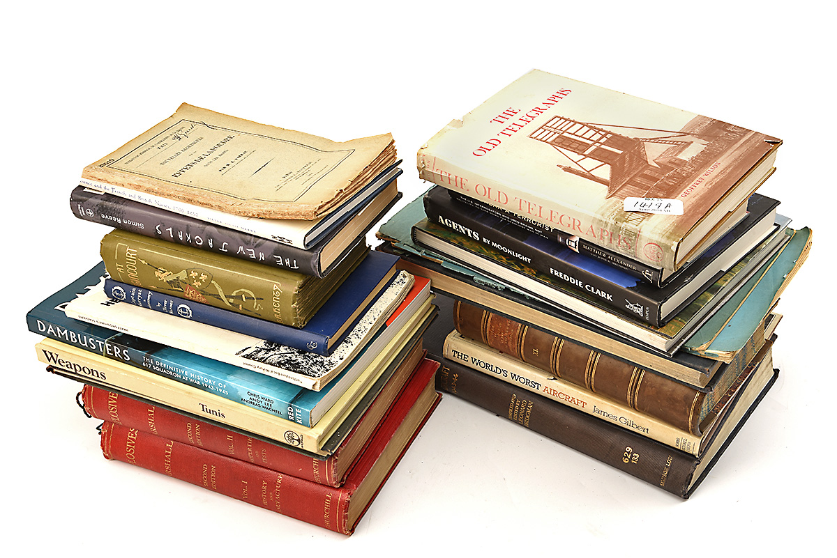 A MIXED GROUP OF 22 MILITARY-RELATED BOOKS, mixed ages and condition, noted both volumes of Arthur Marshall's Explosives; Vol. I History and Manufacture; Vol. II Properties and Tests; Minutes of the Proceedings of the Royal Artillery Institution Vol. XI from 1881, Forty Years On... 1909-1949, being a photographic history of Handley-Page, Jane's All the World's Aircraft 1943-44, The Somme Then and Now After the Battle, Jane's Fighting Ships 1949-50, etc., etc.