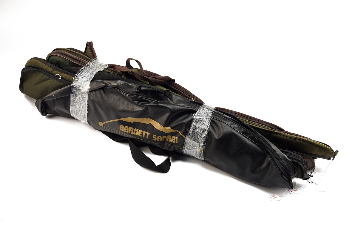 SEVEN ASSORTED GUNSLIPS TOGETHER WITH A COMPOSITE BOW COVER