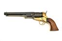 A CASED REPRODUCTION ARMI SAN MARCO .44 PERCUSSION 'COLT REBEL ARMY' REVOLVER, serial no. 91943, with blued octagonal 7 1/2in. barrel, engraved stepped cylinder, open brass frame and smooth walnut grips, in a home made wood case with reproduction flask, nipple-key and sundry accessories