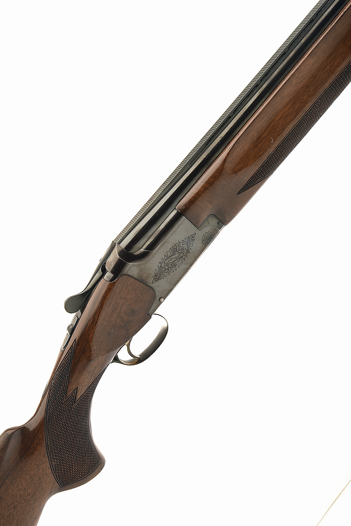MIROKU 12-BORE SINGLE-TRIGGER OVER AND UNDER EJECTOR, serial no. 1130406, for 1977, 30in. nitro reproved barrels with 10mm ventilated matt top-rib, 2 3/4in. chambers, bored approx. 1/4 and 1/2 choke, hold-open toplever, manual safety with integral barrel selector, border and scroll engraving, blued finish, 13 3/4in. pistolgrip stock including recoil pad, weight 7lb. 12oz., in a Lincoln universal case