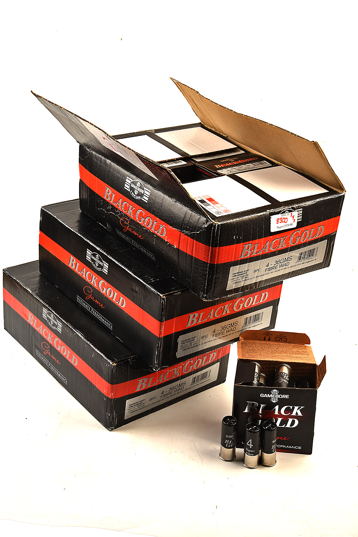 750 GAMEBORE 'BLACK GOLD' GAME 12-BORE SHOTGUN CARTRIDGES, 70MM, NO. 4 DIAMOND SHOT, 36GMS, FIBRE WAD, Batch 1546/20