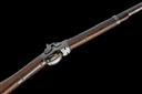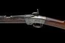 circa 1863, with 21 1/2in. octagonal to round barrel fitted with a block and blade front-sight, ladder rear-sight, breech signed 'ADDRESS POULTNEY & TRIMBLE BALTIMORE, U.S.A.' and 'SMITHS PATENT JUNE 23rd 1857', two piece iron mounted walnut butt-stock (inlet repair at head), short fore-end with a single barrel band, traces of finish