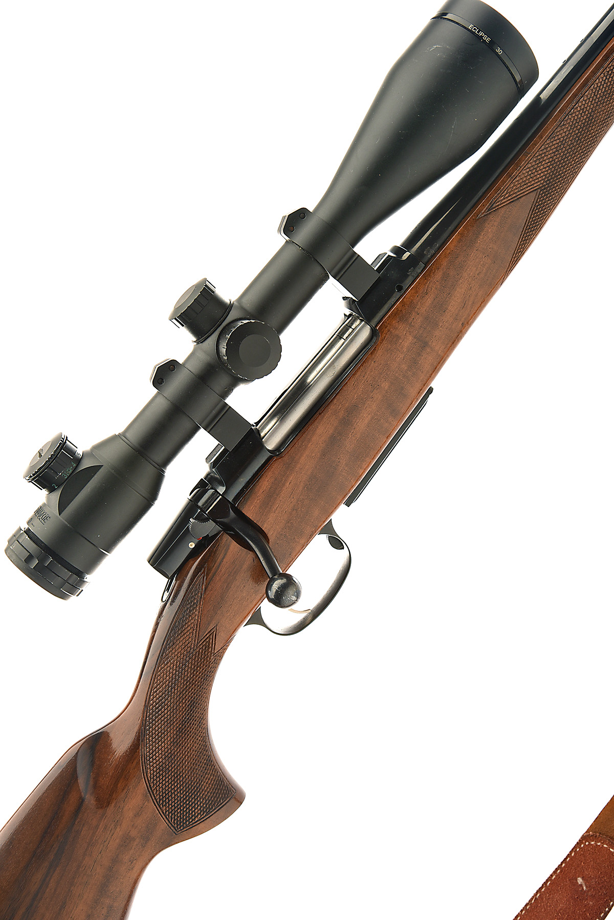 CZ .243 W '550' BOLT-MAGAZINE SPORTING RIFLE, serial no. H7827, dated 2003, 22 14/in. nitro barrel threaded for sound moderator, sights missing, fitted with a hawke 8x56IR telescopic sight, manual safety, detachable magazine, figured pistolgrip stock with ventilated recoil pad with cheekpiece, leather sling