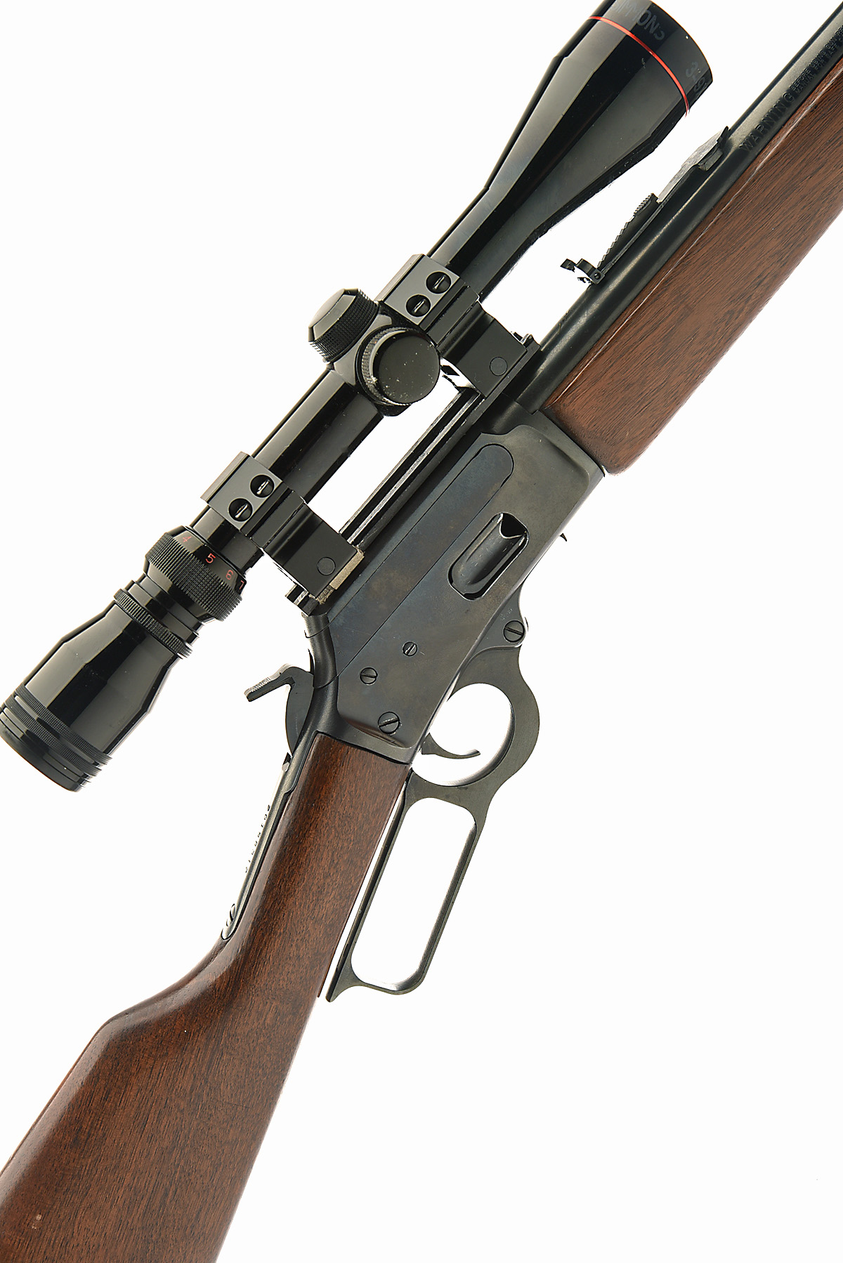 MARLIN .44 REM MAG 'MOD 1894' LEVER-ACTION REPEATING SPORTING RIFLE, serial no. 20198312, for 1980, 20in. nitro barrel, hooded ramp-mounted bead fore-sight, leaf rear-sight, fitted with a Simmons 3-9x40 telescopic sight, half cock safety, tubular magazine, straight stock with recoil pad