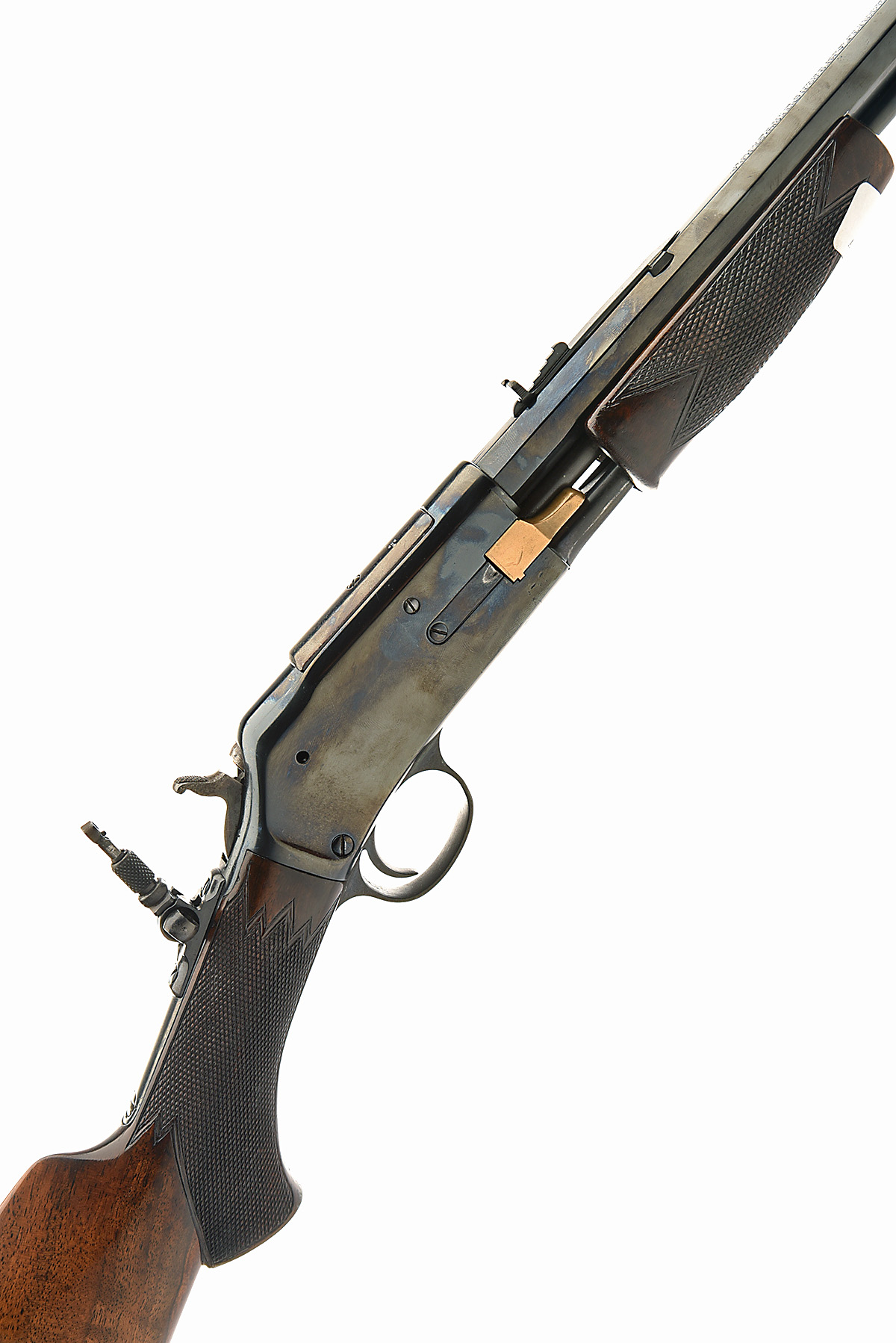 COLT .22 SHORT 'LIGHTNING' PUMP-ACTION SPORTING RIFLE, serial no. 46332, circa 1900, 24in. octagonal nitro barrel, folding ring fore-sight, open rear-sight, engraved 'COLT'S PT.F.A.MFG.CO.HARTFORD.CT.U.S.A. PATENTED MAY 29. SEPT. 18. 83. MAY. 26. 85. JUNE 15. 86. FEB. 22. 87.', half-cock safety, folding tang peep-sight, tubular magazine, figured pistolgrip stock, 13 1/4in. pull including trademark buttplate, weight 5lb. 8oz.