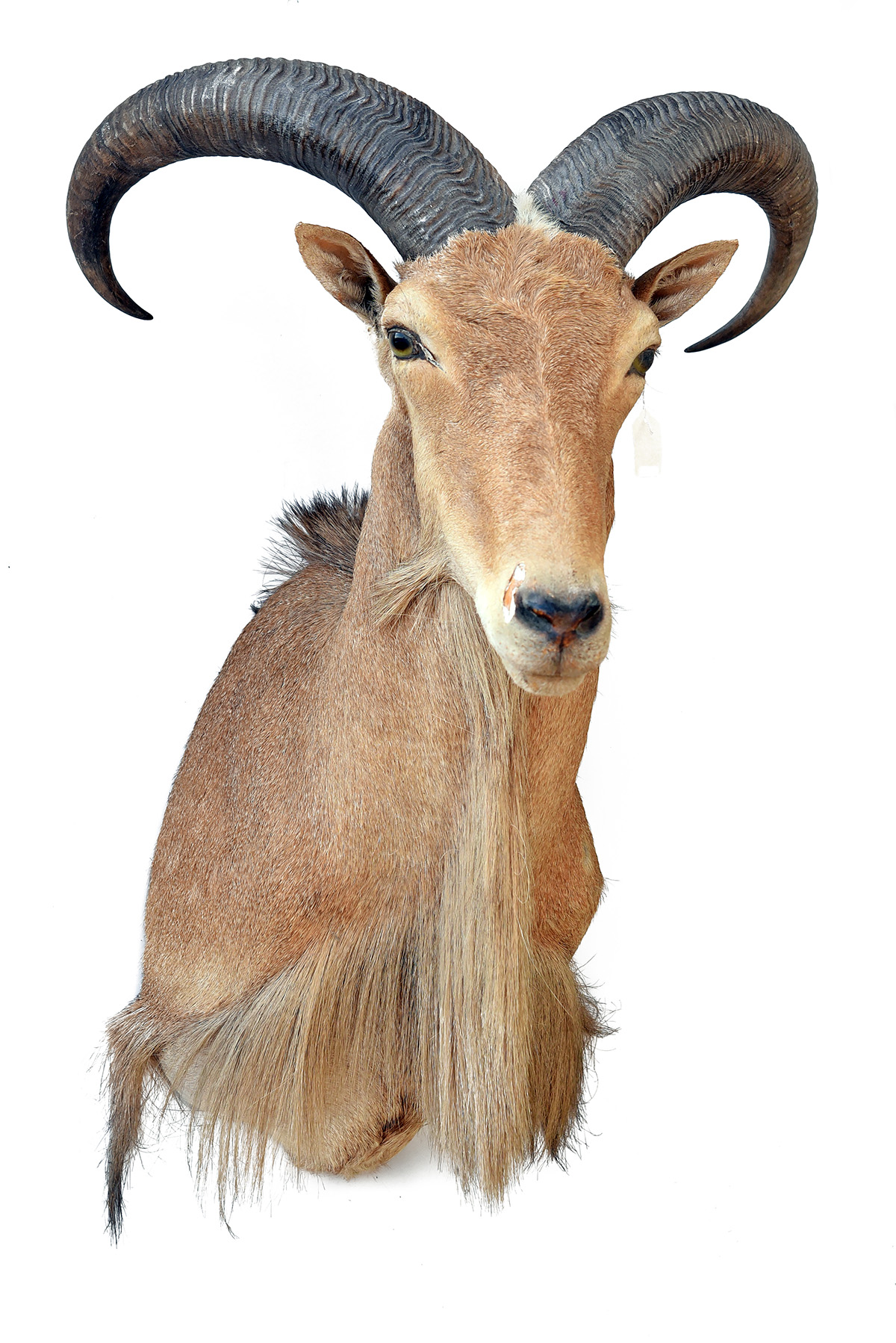 A CAPE AND HEAD MOUNT OF A BARBARY SHEEP, with approx. 22in. horns, chip to nose