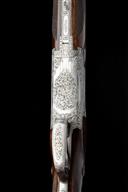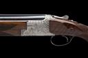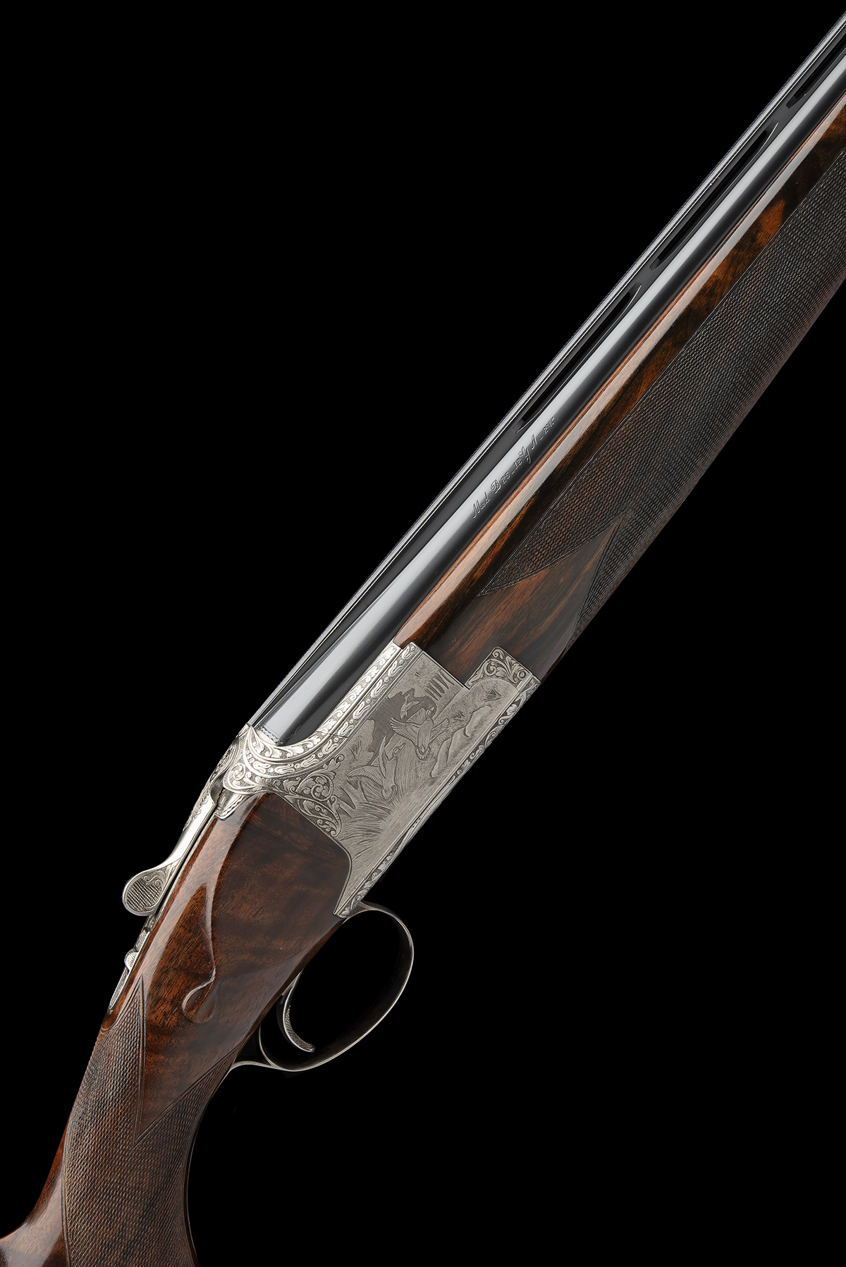 for 1995, 30in. nitro barrels with 12mm ventilated matt top-rib with intermediate bead sight, 2 3/4in. chambers, bored approx. 1/4 and 3/4 choke, hold-open toplever, manual safety with integral barrel selector switch and gold-inlaid 'O', 'U' and 'S' details, action and furniture carved in high relief with acanthus scrollwork on a stippled background, surrounding game scenes of pheasant and mallard, signed 'A. BRIGANTE', 14 7/8in. 'tiger stripe' figured pistolgrip stock with fluted teardrops and including 7/8in. leather covered recoil pad, weight 7lb. 9oz.