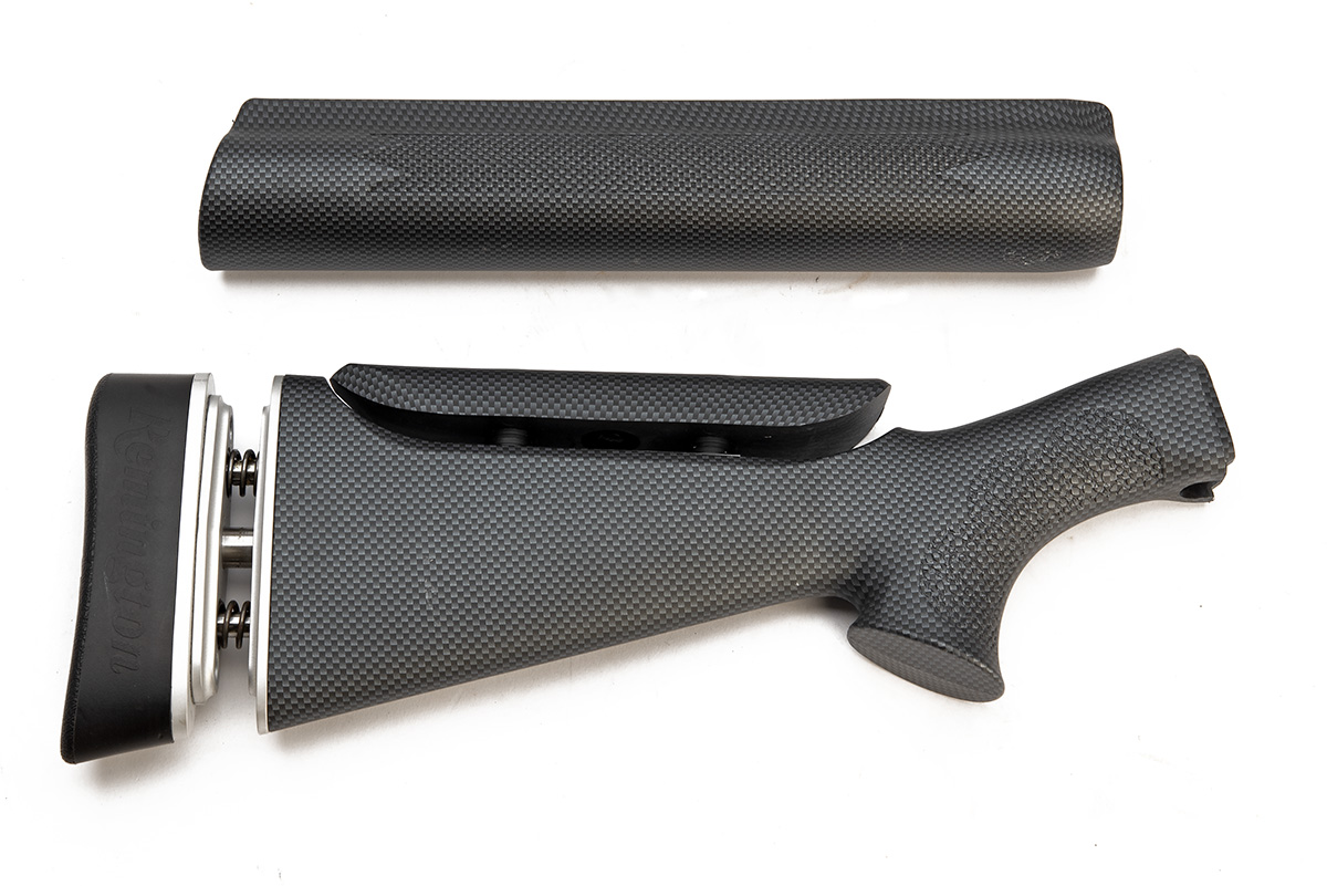 A REMINGTON CARBON-FIBRE DIPPED MODEL 1100 STOCK AND FORE-END, stock no. F404791 & F40792, (2)