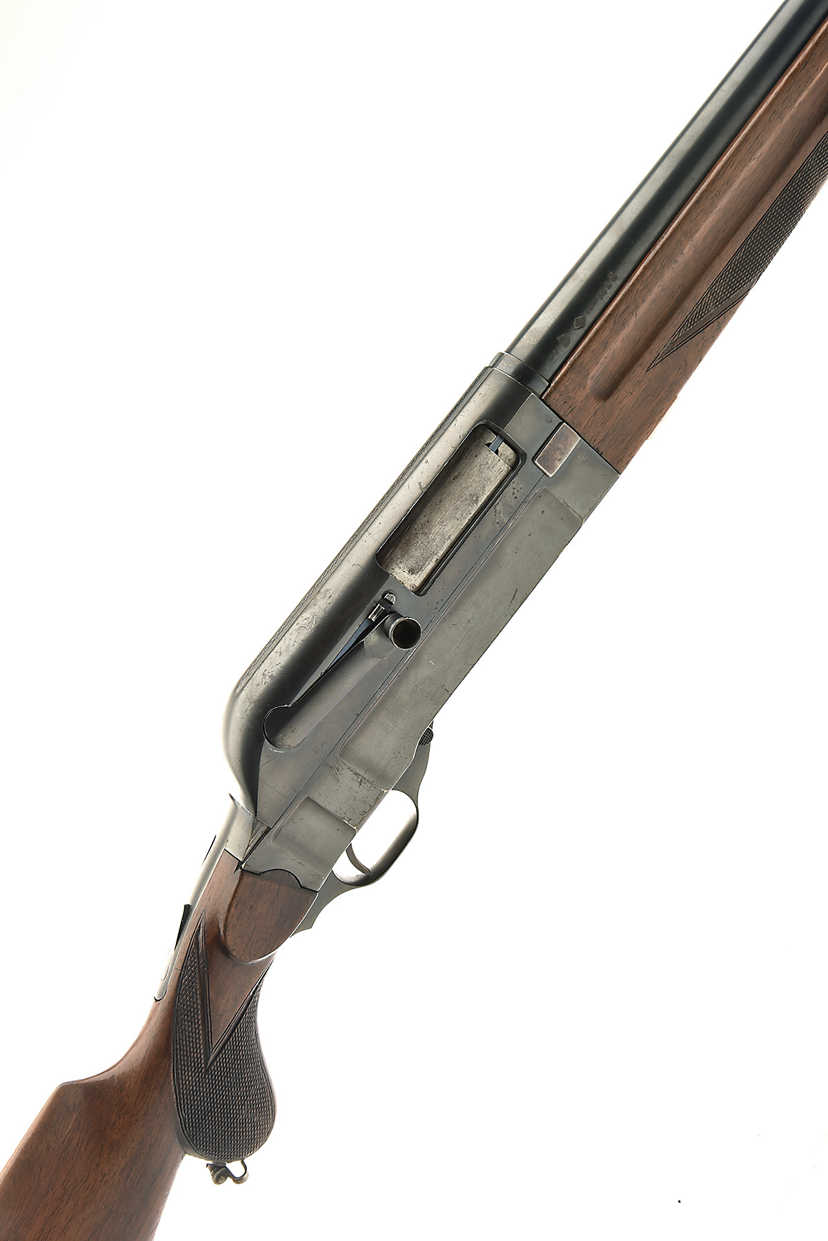 A SCARCE F.A.C. PATENT 12-BORE 'WALTHER'S PATENT' SEMI-AUTO SHOTGUN, serial no. 3046, circa 1925, 27 1/2in. nitro reproved ribless barrel (in 2009), with ramp-mounted bead fore-sight, 2 1/2in. chamber, bored approx. 3/4 choke, Walther patent action with rotating sidelever cocking toggle, push-button safety, sprung drop-down fore-end with internal magazine retaining original blued finish, 13 3/4in. pistolgrip stock including buttplate, sling swivels, weight 7lb.