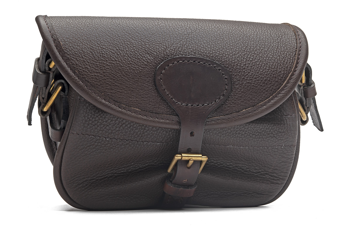A VIRTUALLY NEW AND UNUSED SUEDE-LINED LEATHER CARTRIDGE BAG,
