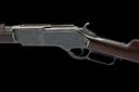for 1882, second model, with octagonal 28in. barrel signed by the maker on the top-flat and with retailer's marking 'PETRUS CLAASEN INKRUHPERFONTEIN' to the left upper side-flat, engine matting to the sighting plane, block and dove-tailed blade fore-sight, 'Africa' rear-sight comprising a ladder together with six graduated folding leaves, each with platinum line and a further standing notch rear-sight, the breech end of barrel with Birmingham period proofs and marked 'ENGLISH PROVED' behind the retailers mark, slab-sided receiver, the sliding dust-cover running on an applied mount, replacement extractor-claw, exposed hammer, the top-tank marked in script 'WINCHESTER MODEL 1876', walnut straight-hand butt-stock, crescent heel-plate with central trapdoor, single-set trigger (set not functioning), walnut fore-end and full-length under-barrel tubular magazine