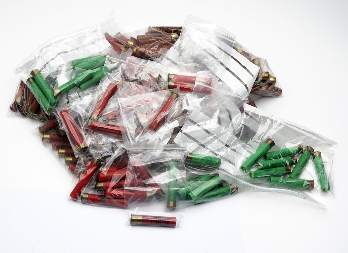 x8 Fiocchi 7-shot; x7 Fiocchi 6-shot; x7 Fiocchi 5-shot; all long green plastic case; x1 Fiocchi 6-shot short green plastic case; x2 Fiocchi 7-shot; x3 Fiocchi 6-shot; x1 Fiocchi 5-shot; x1 Fiocchi M-shot; all long red plastic case