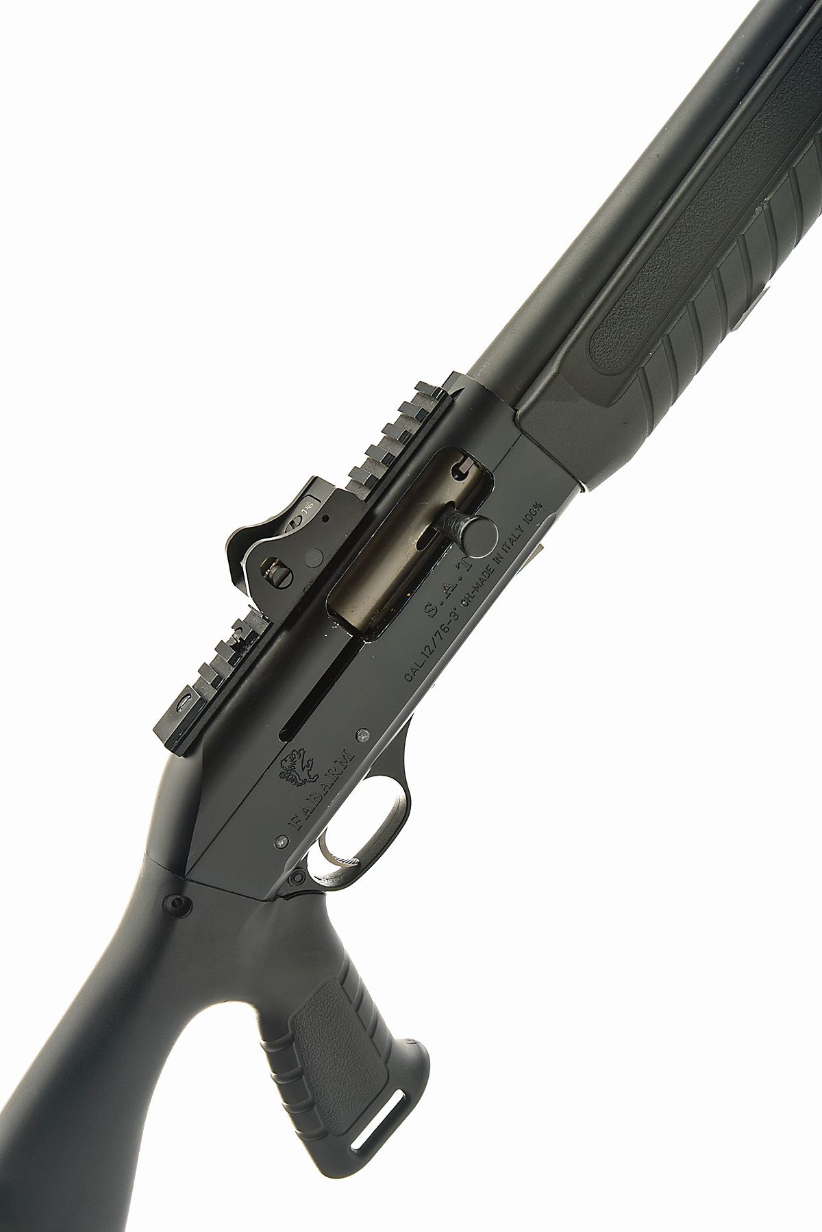 AN F.A.C. FABARM 12-BORE (3IN.) 'S.A.T.8.' SEMI-AUTO TACTICAL SHOTGUN, serial no. 7017766, for 2006, extended tubular magazine, 26in. nitro barrel including breaching muzzle break, raised high-visibility bead fore-sight with side protectors, 3in. chamber, receiver fitted with a picatinny rail with high-visibility battle sight, manual push-button safety, extended charge handle, synthetic pistolgrip stock, 12 1/2in. pull including ventilated rubber recoil pad, fore-end with underslung picatinny rail, sling swivels, weight 7lb. 13oz.