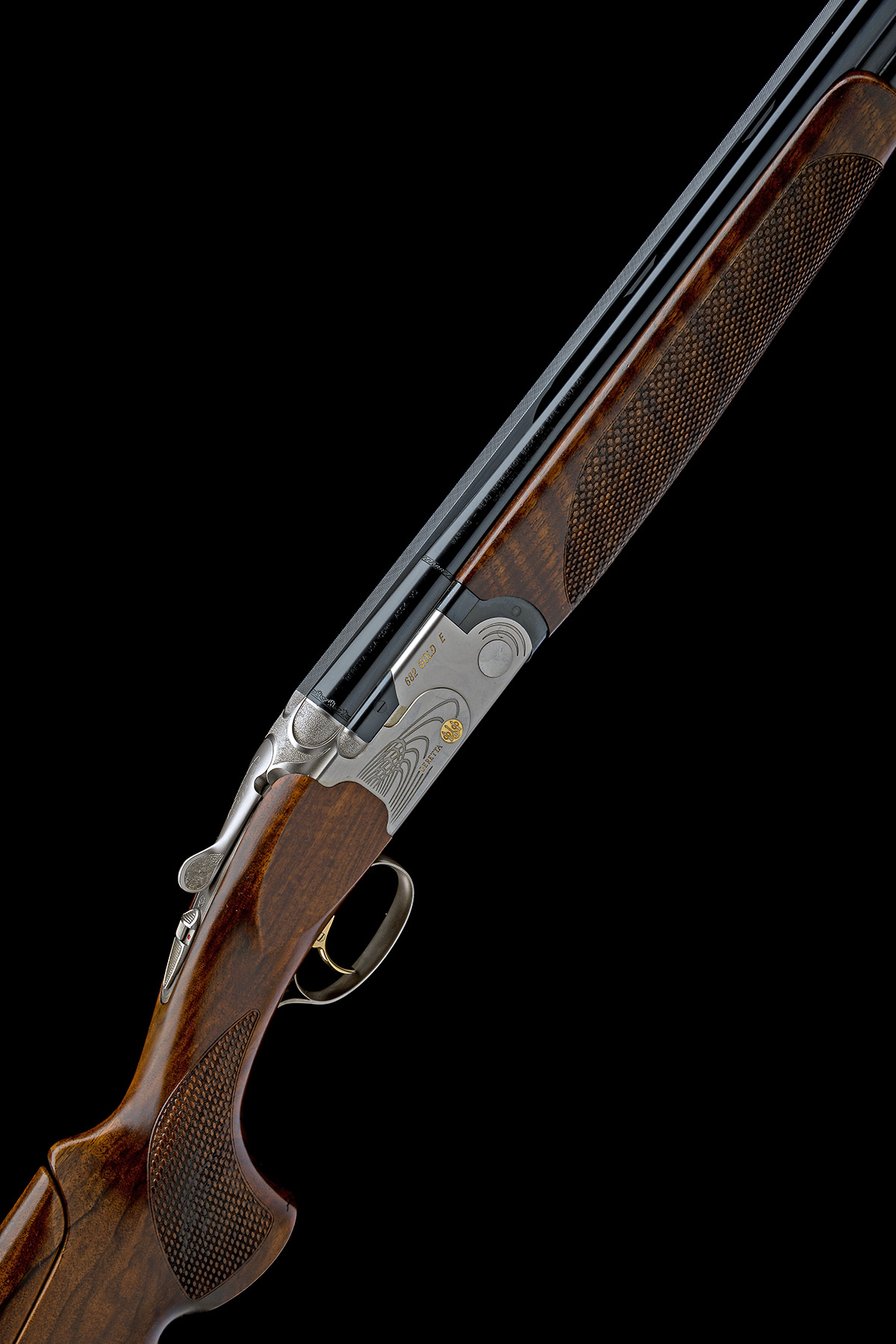 for 2008, 30in. nitro barrels with tapered ventilated matt top-rib, 3in. chambers, multichokes (with spares), hold-open toplever, manual safety with integral barrel selector, adjustable gold-washed trigger, bright and satin finish with geometric designs and gold detailing, 14 5/8in. figured pistolgrip stock with palm swell, adjustable comb and including 3/4in. recoil pad, weight 7lb. 13oz., in its universal case