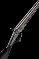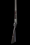 circa 1874, 29 7/8in. black powder only bold damascus barrels, the rib engraved 'ADKIN. MAKER. BEDFORD.', 2 1/2in. chambers, bored approx. true cyl. in both, some minor denting, Jones patent rotary-underlever, carved percussion fences, non-rebounding back-action locks with dolphin hammers, retaining very slight traces of original colour-hardening, 14 3/8in. figured stock including steel buttplate, weight 7lb. 10oz.