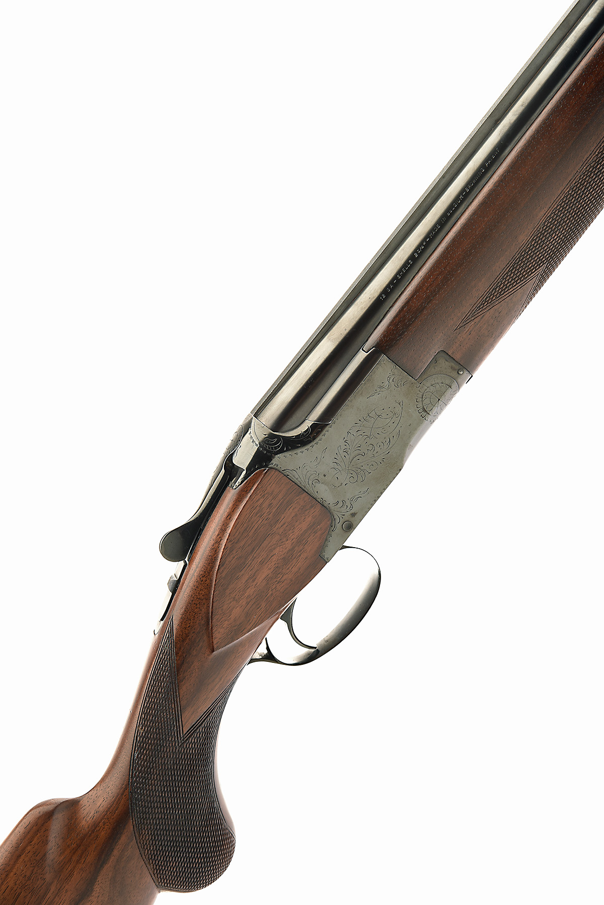 BROWNING 12-BORE 'LIGHTNING' SINGLE-TRIGGER OVER AND UNDER EJECTOR, serial no. 6960 S69, dated 1969, 32in. nitro barrels with 5mm ventilated matt top-rib, 2 3/4in. chambers, bored approx. 1/2 and 3/4 choke, hold-open toplever, manual safety with integral barrel selector switch, border and acanthus scroll engraving, 14 1/4in. semi-pistolgrip stock including 3/4in. rubber recoil pad, weight 7lb. 9oz.