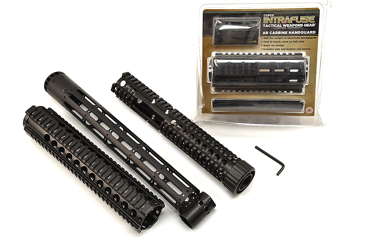 'TAPCO INTRAFUSE AR CARBINE' quad rail hand guard, in black, new & unused in box, 7in length