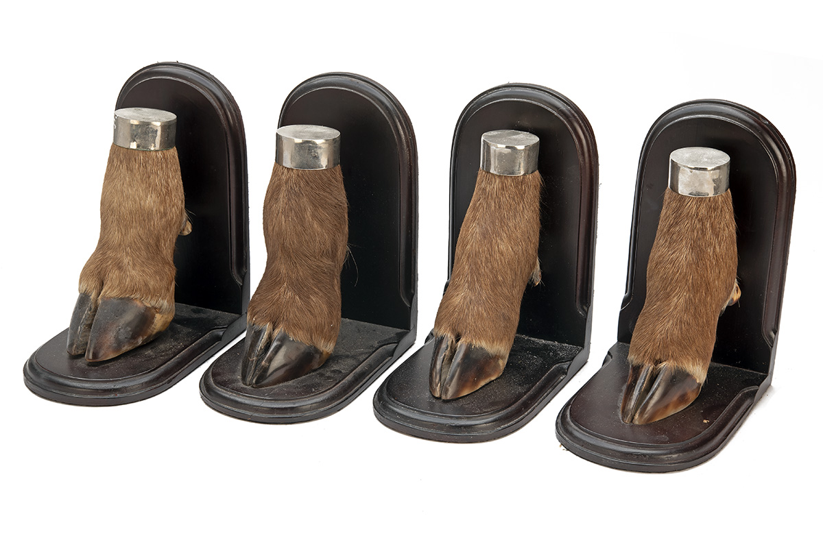 FOUR HARTEBEEST FEET BOOK-ENDS,